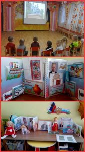 Государственный праздник символизирует единство и сплочённость российского народа в тяжёлые периоды нашей страны. Ребята нашего ДОУ с раннего детства узнают основные моменты истории нашего государства. И сегодня воспитанники всех возрастов, в силу своих лет, узнавали полезные факты истории России. Малыши знакомились с названием страны, с её официальным символом -флагом и значением его цветов. Рассматривали матрёшку, олицетворяющую народные традиции и культурное наследие. Знакомились с русскими народными красочными нарядами. Ребята средней группы с помощью мультфильма узнавали историю праздника, знакомились с историческими фактами. А также всю неделю посвятили изучению символики Российского государства, создан патриотический уголок. Дошкольникам старших возрастов была представлена презентация «День народного единства», на которой закрепили представление о многонациональности нашей страны. В течение всей недели проводились тематические беседы о значении праздника.Совместно с ребятами изготовлен тематический лэпбук. Все воспитанники нашего ДОУ также приняли участие в выставке, посвящённой празднику -«День народного единства.